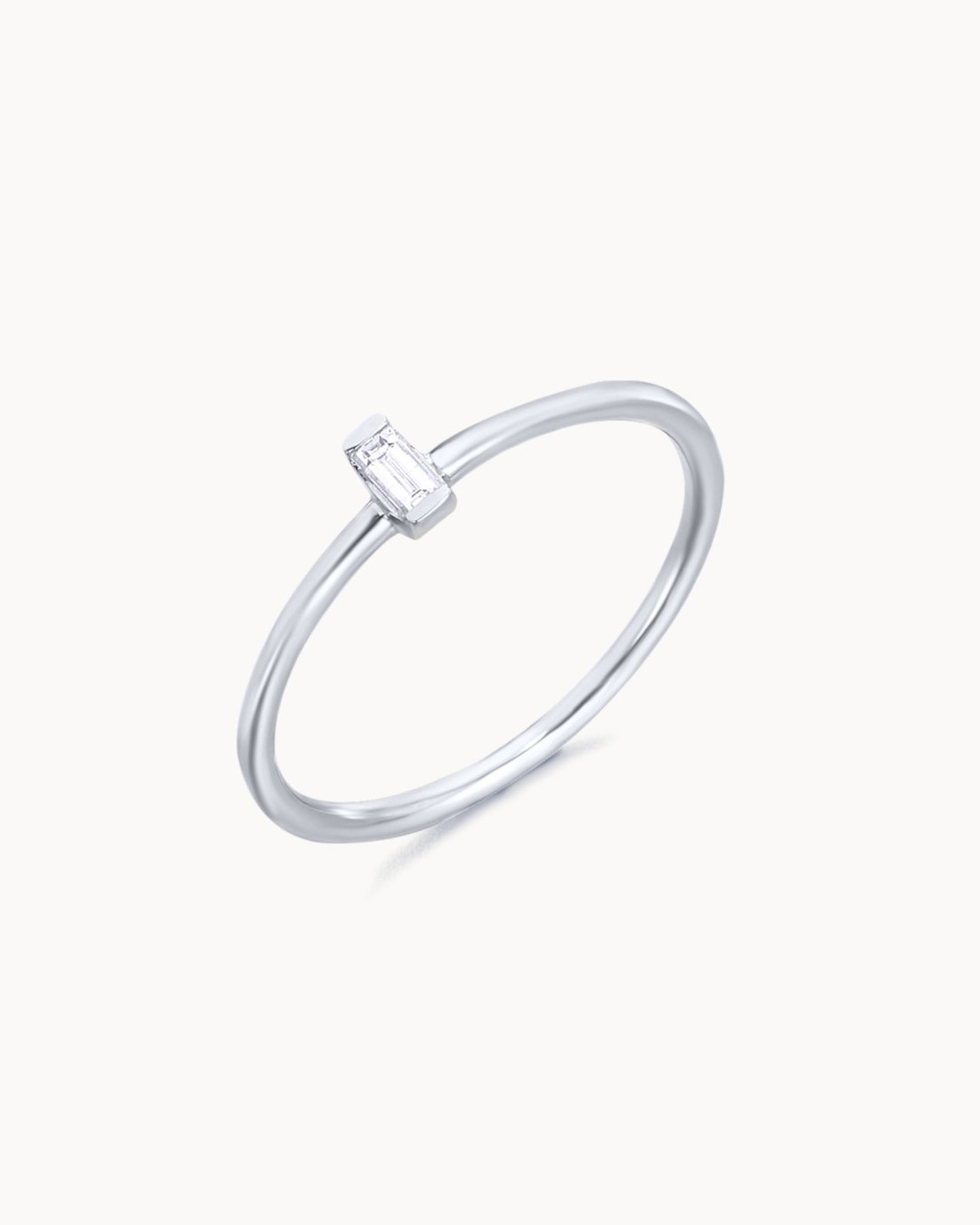 Bague en or blanc avec diamant taille baguette