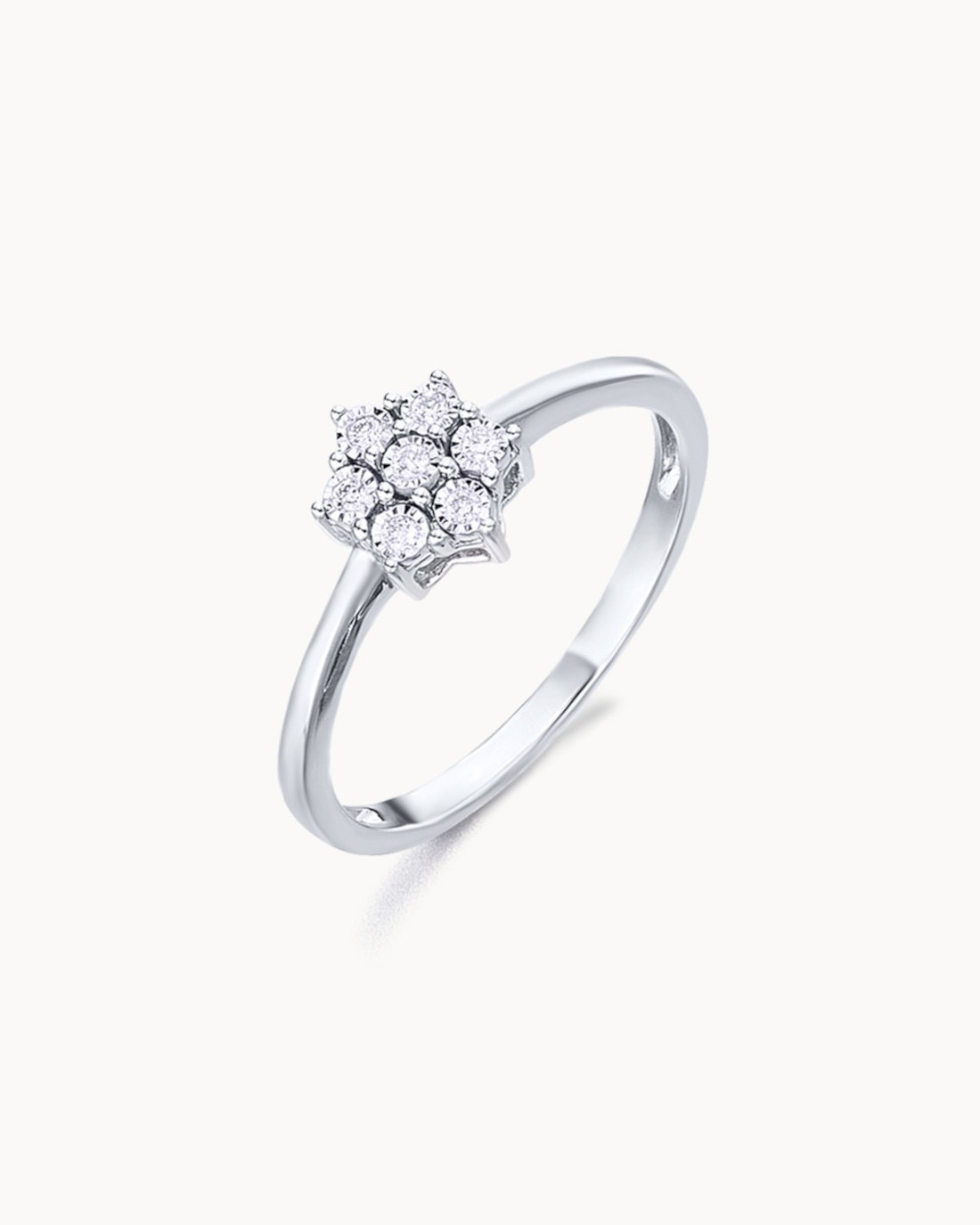 Inel clasic rozetă din aur alb cu diamante